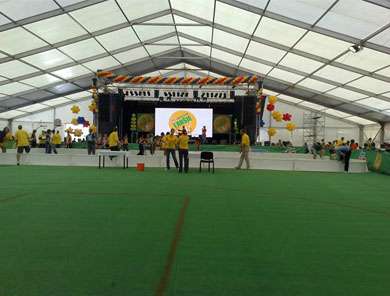 靈通篷房目前已成為眾多國內外大型體育賽事的篷房供應商,靈通提供的賽事篷房主要用作于觀眾看臺、餐廳、休息廳、售票處、安檢處等多種用途。靈通篷房為賽場上的工作人員、觀眾提供更好的工作場景和觀賽體驗。這里也不得不說安檢篷房,安檢篷房也是賽事篷房中的一種,用于安檢進場使用的篷房。