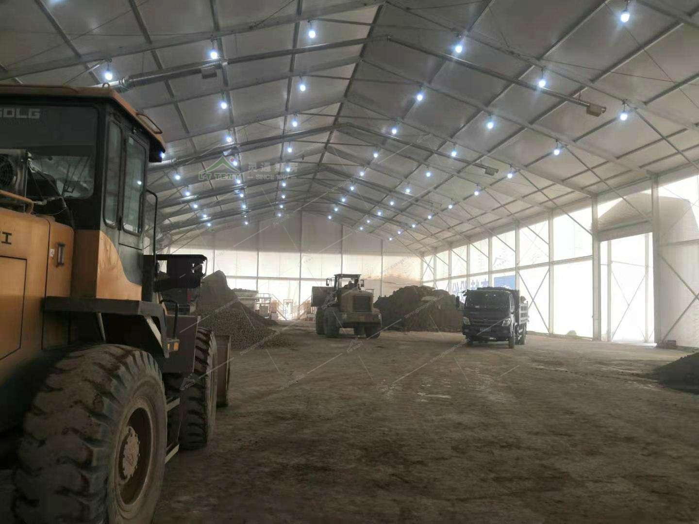 作為臨時的建筑形態,裝配式工業倉儲帳篷的結構優勢是:設計有規律,結構可互換,無限延長或縮短。利用這個優勢,企業可充分利用每一處空間,完全自由搭建。