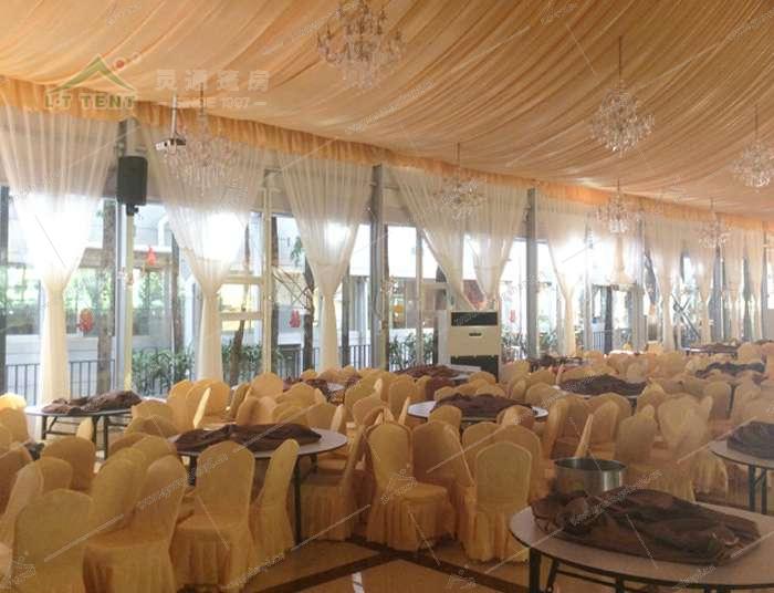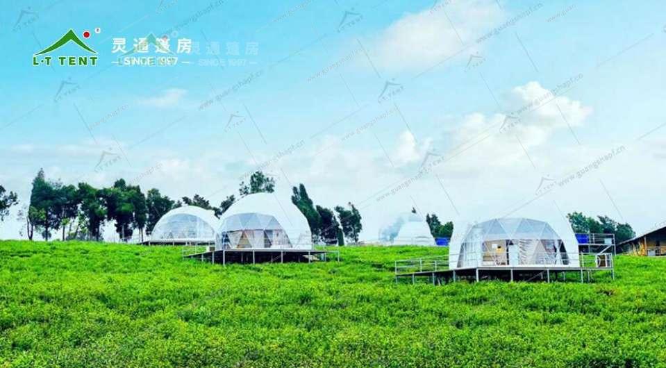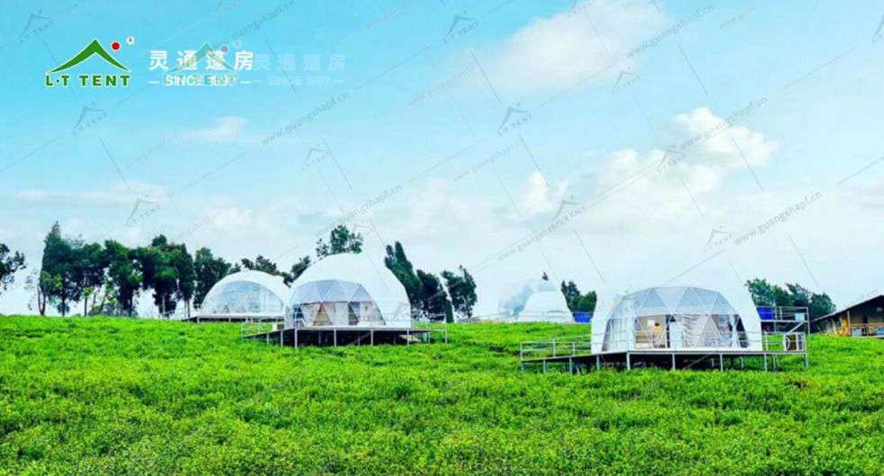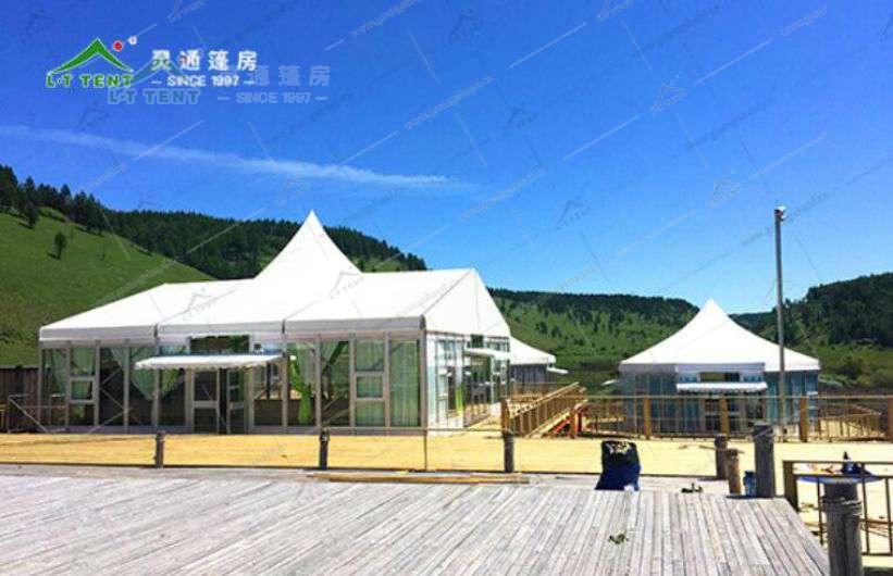 民宿酒店篷房區(qū)別于傳統(tǒng)的土建酒店的石灰水泥墻的模式,框架完全采用鋁合金,輕便美觀;